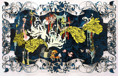 oil, acrylic and glitter on cut-edge panel Courtesy of the Artist |